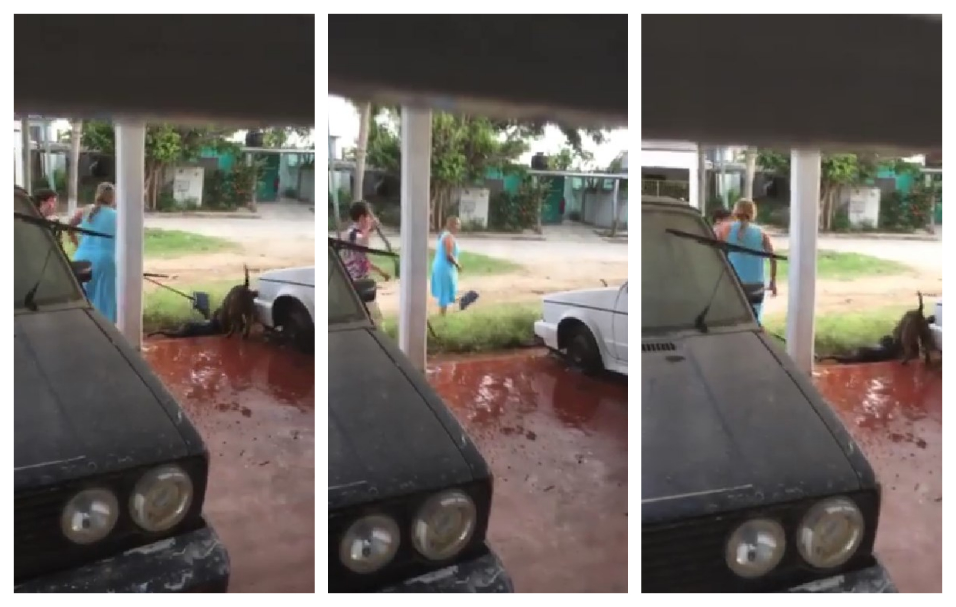 Relató que esta misma mañana, uno de los canes de la funcionaria atacó a un perrito y le dio muerte. En el video puede verse a la mujer, acompañada de un joven, presuntamente su hijo, quienes intentan separar a los animales con una escoba y un palo, sin éxito. Posteriormente, la funcionaria municipal logra ponerle la cadena a su mascota y llevársela a su casa, en tanto que el muchacho arrastra el cadáver del otro perro a un área verde. Después vuelven a salir para limpiar el área y llevarse el cuerpo para tirarlo en otra parte.
