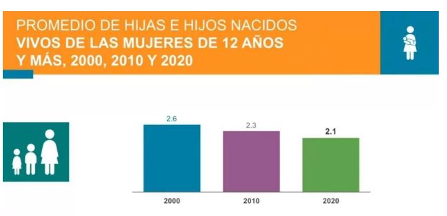 El promedio de hijos e hijas que tiene una mujer en México bajó a 2.1, de acuerdo con el el Censo de Población y Vivienda que fue realizado el 2020 por el Instituto Nacional de Estadística y Geografía (Inegi).