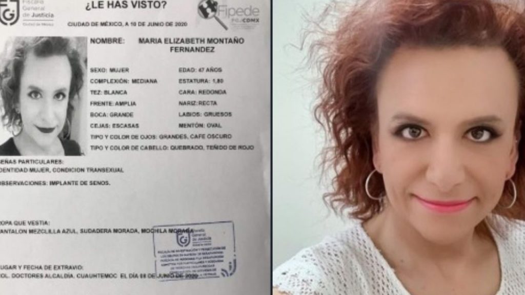 CIUDAD DE MÉXICO La Fiscalía General de Justicia (FGJ) de la Ciudad de México informó del hallazgo del cadáver de la doctora transgénero María Elizabeth Montaño, quien fue reportada como desaparecida el pasado 10 de junio.