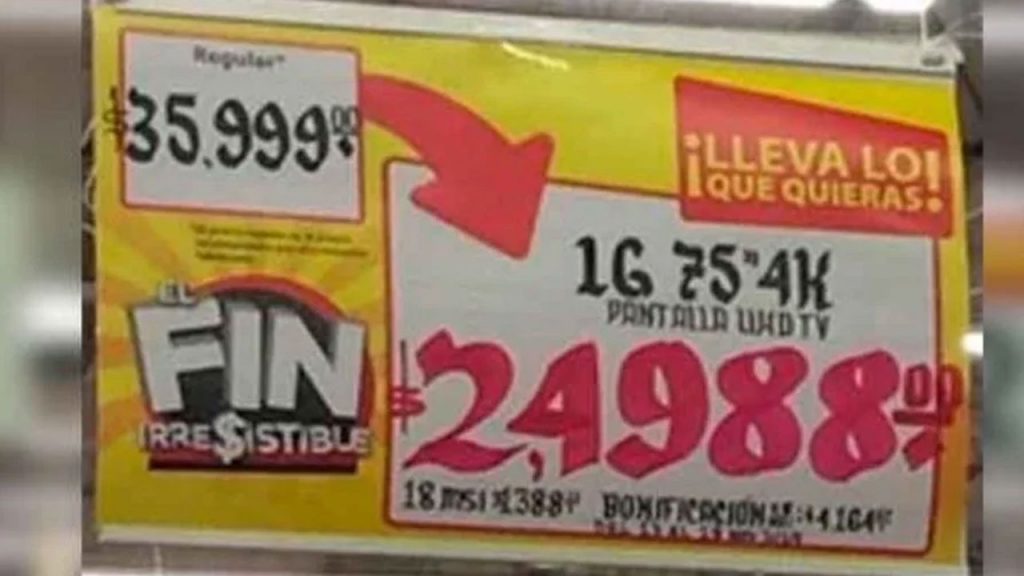 Siete pantallas con un valor de 24 mil pesos ofertadas por error en 2 mil 400 pesos fue lo que se llevaron clientes que acudieron al “Fin Irresistible” de la cadena de Walmart.