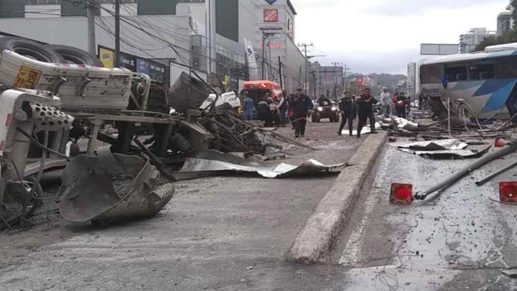 De acuerdo con los reportes, la revolvedora de la empresa de Cementos Mexicanos (Cemex) presentó una falla en el sistema de frenado, lo que provocó que se impactara por la parte posterior de un autobús, provocando que volcara y se saliera la olla donde almacena el cemento, la cual se desprendió del chasis y golpeó al resto de los vehículos.