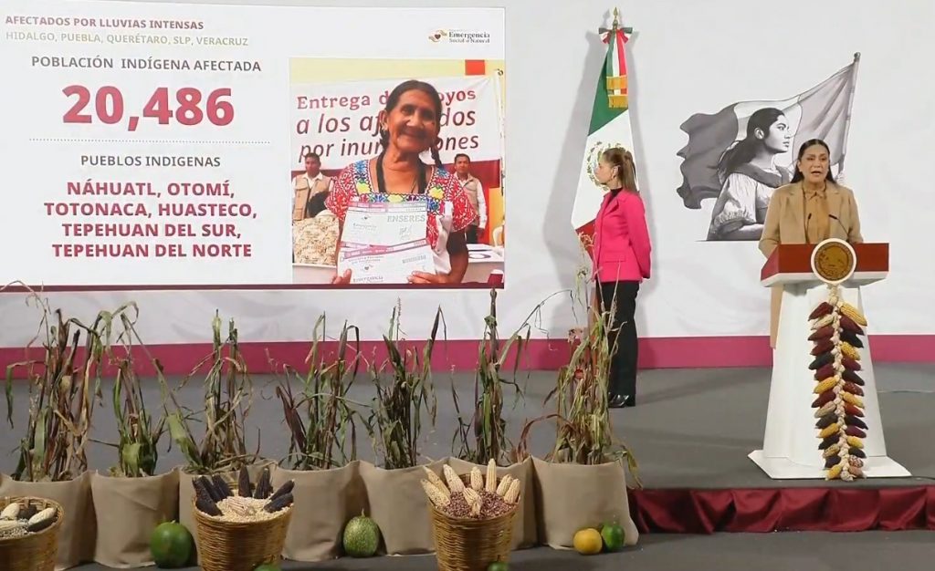 Ciudad de México.- La secretaria de Bienestar, Ariadna Montiel Reyes, anunció que el gobierno federal ya inició la entrega de apoyos a 348 mil personas afectadas por las lluvias intensas en Hidalgo, Veracruz, Puebla, San Luis Potosí y Querétaro, tras concluir un censo casa por casa que registró daños en 104,417 viviendas, 7,831 locales comerciales, 29,045 pequeños productores y 56,600 hectáreas de cultivo.