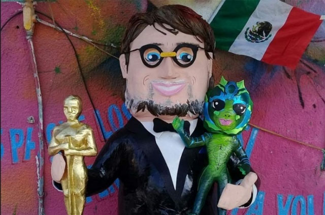 La piñata, que muestra la figura de del Toro con un Oscar, presenta además una figura del “mounstrito”, como se refirió el artesano al personaje principal de la película ganadora La Forma del Agua.