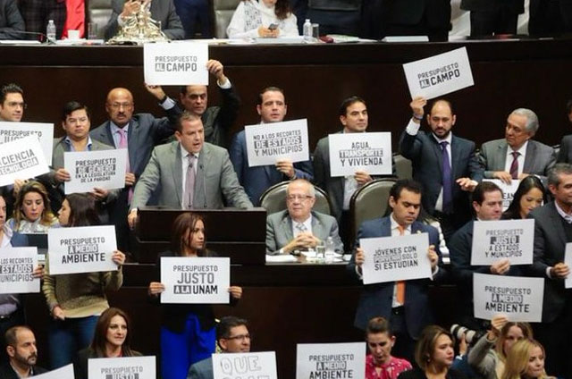 Durante su participación, Urzúa recibió protestas de diputados de oposición, que pidieron más recursos para universidades, estados, municipios, medio ambiente y equidad de género.