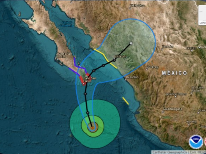 Hay zona de prevención por efectos de huracán desde Todos Santos hasta Los Barriles, en Baja California Sur y zona de prevención por efectos de tormenta tropical desde el norte de Los Barriles hasta San Evaristo y del norte de Todos Santos hasta Santa Fe, Baja California Sur.