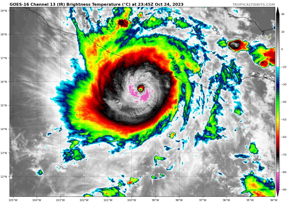 “Otis se intensificó rápidamente a Huracán de Categoría 5 en la Escala Saffir-Simpson. Su centro se localiza a 90 kilómetros del sur-sureste de Acapulco, Guerrero, y a 125 km al oeste-suroeste de Punta Maldonado, en el mismo estado”, publicó en redes.