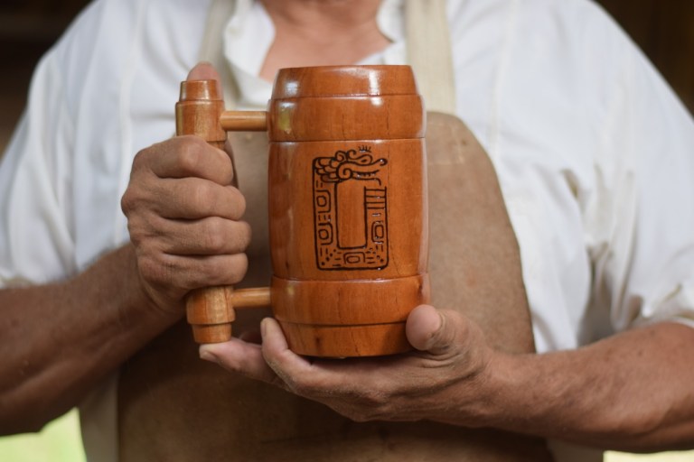 Este sexagenario balancanense es tan bueno con la madera que sus creaciones no se reducen a sólo muebles, también elabora artesanías como platos con pirograbado, jarrones, tazas, y hasta figuras talladas como cabezas de venado.