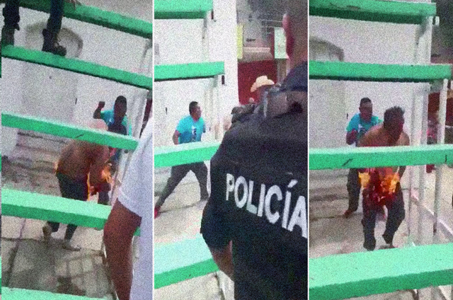 Imágenes que circulan en redes muestran el momento en el que la gente de Metepec incendió al agente, quien intentó defenderse. Policías estatales intervinieron e intentaron salvar la vida de los cuatro aprehendidos, pero ya era demasiado tarde, según un ficha informativa.