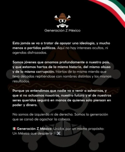 Según su manifiesto, esta movilización nace del “hartazgo colectivo de la juventud mexicana” frente a la corrupción, el abuso de poder y la violencia.