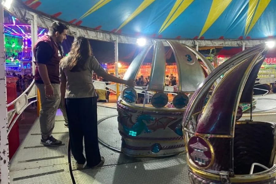 Yucatán.- Un accidente ocurrió en la Feria Yucatán en Xmatkuil luego de que una de las “tazas locas” se saliera de su riel mientras dos personas viajaban en el juego mecánico. Tras el incidente, la atracción fue inmediatamente clausurada.