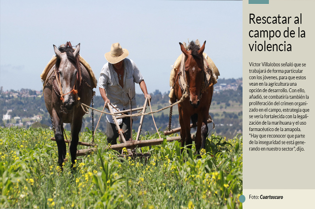Ciudad de México.- El próximo titular de la Secretaría de Agricultura, Ganadería, Desarrollo Rural, Pesca y Alimentación (Sagarpa), Víctor Villalobos, dijo que rescatar de la pobreza a los productores mexicanos, incrementar la productividad del campo, cuidar los recursos, como el agua y la tierra serán algunos de los pilares del Gobierno de Andrés Manuel López Obrador en la materia.