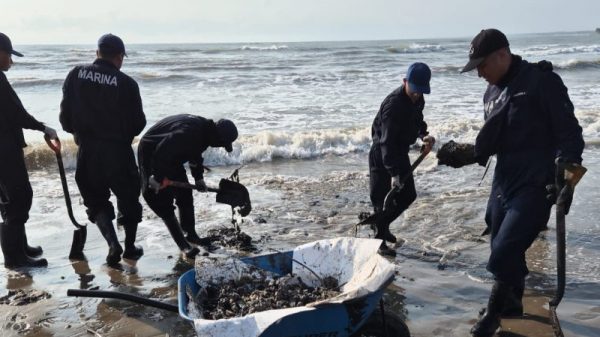 Autoridades indicaron que el derrame pudo originarse por un vertimiento ilegal y emanaciones naturales. Hasta ahora, se han recolectado 128 toneladas de residuos.