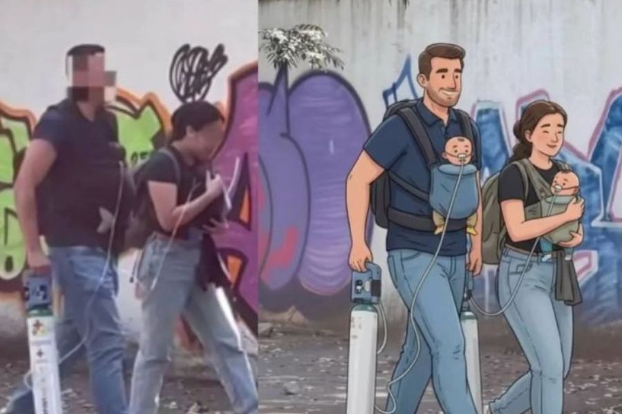 La historia se viralizó gracias a un video que mostraba el esfuerzo diario de muchos padres mexicanos: la joven madre cargaba con cuidado a uno de sus bebés, mientras el padre sostenía al otro en su pecho, manteniendo las manos libres para transportar los tanques de oxígeno que ambos pequeños necesitaban.
