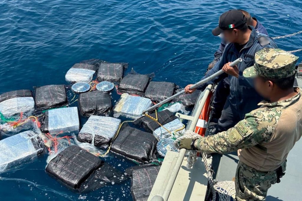 Ciudad de México.- En un operativo conjunto, elementos de la Secretaría de Marina aseguraron cerca de 904 kilos de presunta cocaína a 65 millas náuticas al noroeste de Puerto Chiapas.