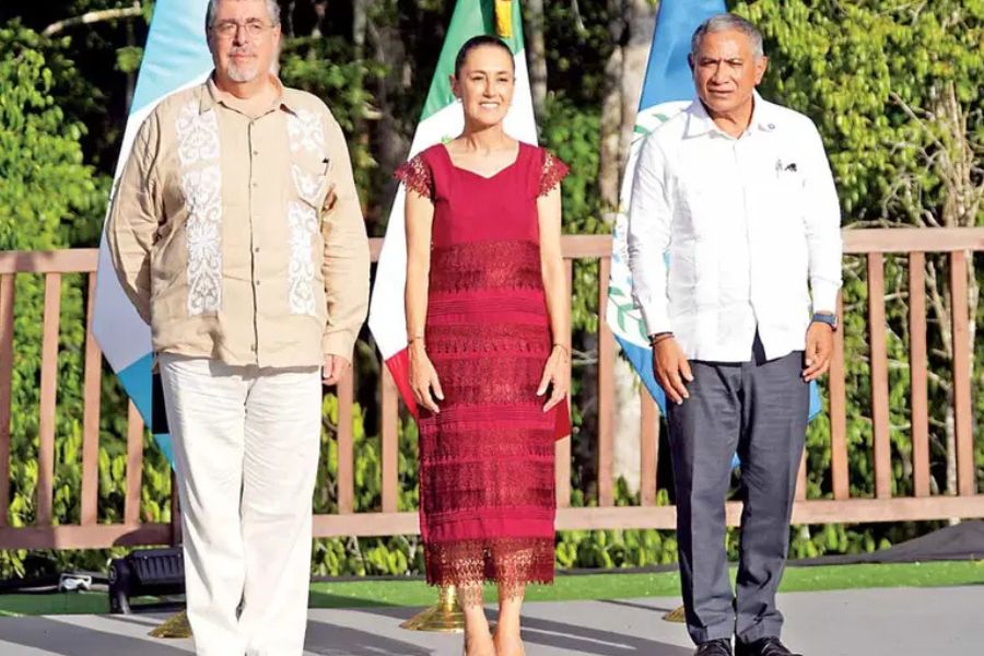 La presidenta de México, Claudia Sheinbaum, recibió en el corazón de la selva a Bernardo Arévalo, presidente de Guatemala, y al primer ministro de Belice, Johnny Briceño, en una reunión que consolidó un compromiso común por el medio ambiente, la biodiversidad y la cultura ancestral de Mesoamérica.