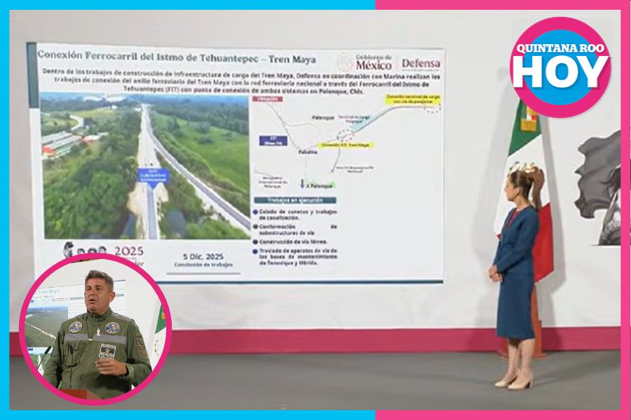 En la “Mañanera del Pueblo” de la presidenta Claudia Sheinbaum Pardo, Vallejo Suárez especificó que por orden de la Presidencia llevarán la vía férrea de carga de Palenque, Chiapas a Progreso, Yucatán, “de Progreso se llevará a Cancún, Quintana Roo”.
