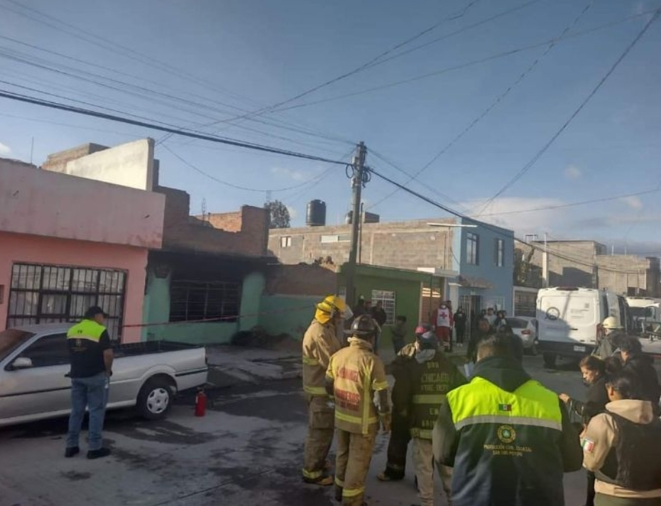La Fiscalía de San Luis Potosí reveló que una de las líneas de investigación apunta a que el fuego comenzó después de un incidente relacionado con el tanque de gas que había en este domicilio.