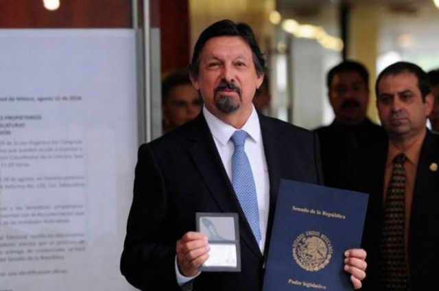 Arribó a la sala de apoyo a senadores para recibir su credencial de identificación y acceso a este recinto la tarde de este lunes.