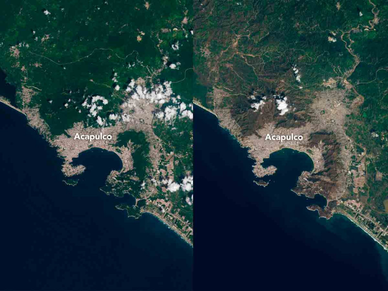 CDMX.- Con pérdidas incalculables dejó el huracán Otis a Guerrero, sobre todo al puerto de Acapulco en donde las víctimas mortales fueron más de 40, y donde los habitantes comenzaron ya la reconstrucción, no obstante la devastación ecológica también es un hecho y así lo ha resalta la propia NASA.