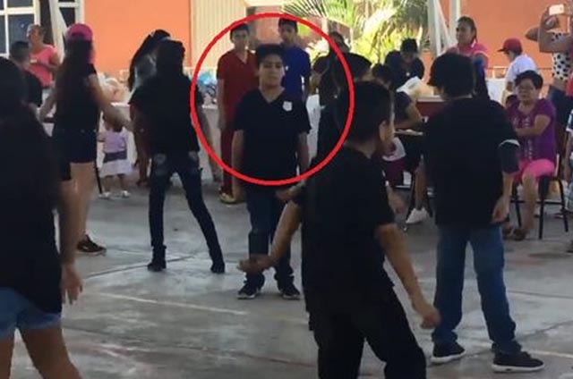En el video podemos observar cómo el niño se queda parado mientras sus compañeros siguen la coreografía.