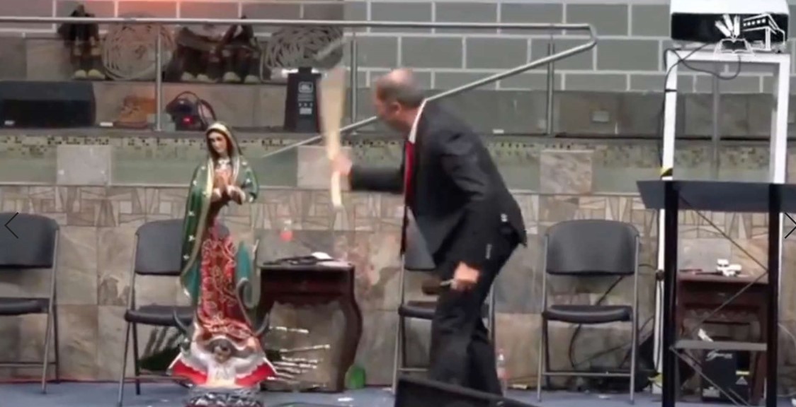 CDMX.- Ha causado un revuelo la acción de un pastor de la Iglesia Bautista por destruir las figuras de la Virgen de Guadalupe y de la Santa Muerte.