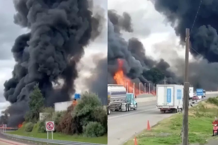 Una pipa de diésel explotó en la México-Puebla tras chocar; el conductor resultó gravemente herido. La vía fue cerrada en ambos sentidos.