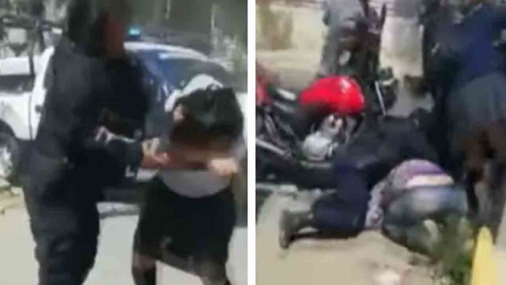 Un video que es difundido en redes sociales muestra el momento en que un grupo de policías agreden a un mototaxista y a dos jovencitas que van uniformadas a bordo de dicho vehículo.