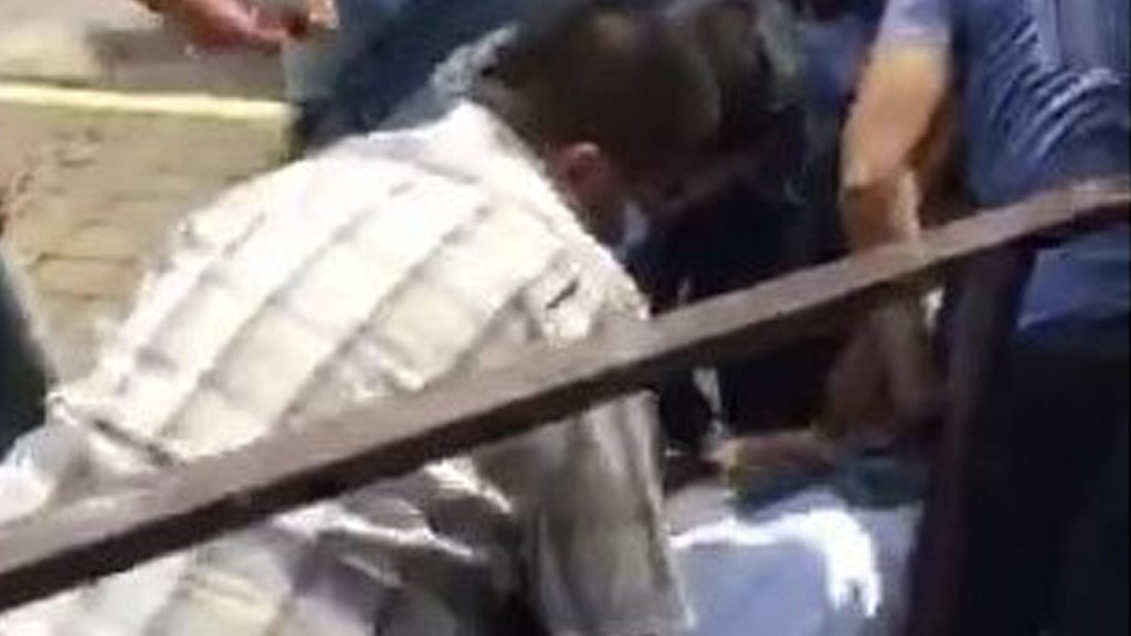 En el video que un usuario hizo llegar a Grupo Cantón, se observa cuando los testigos golpean al presunto asaltante.