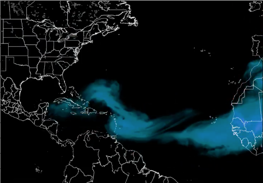 La nube de polvo de Sahara se mueve por el Atlántico Tropical y aunque es difícil predecir con exactitud cuándo se dará este fenómeno natural en México, ya que todo depende de la variabilidad de los vientos, se prevé que aumente hacia el mes de julio y agosto.