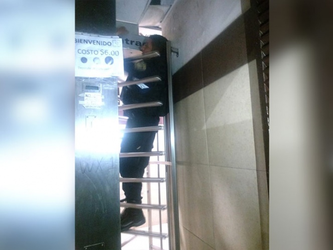 Los hechos indican que cerca de las 6:00 de la mañana de este sábado se informó al mando policiaco del policía atorado en los torniquetes de los baños.