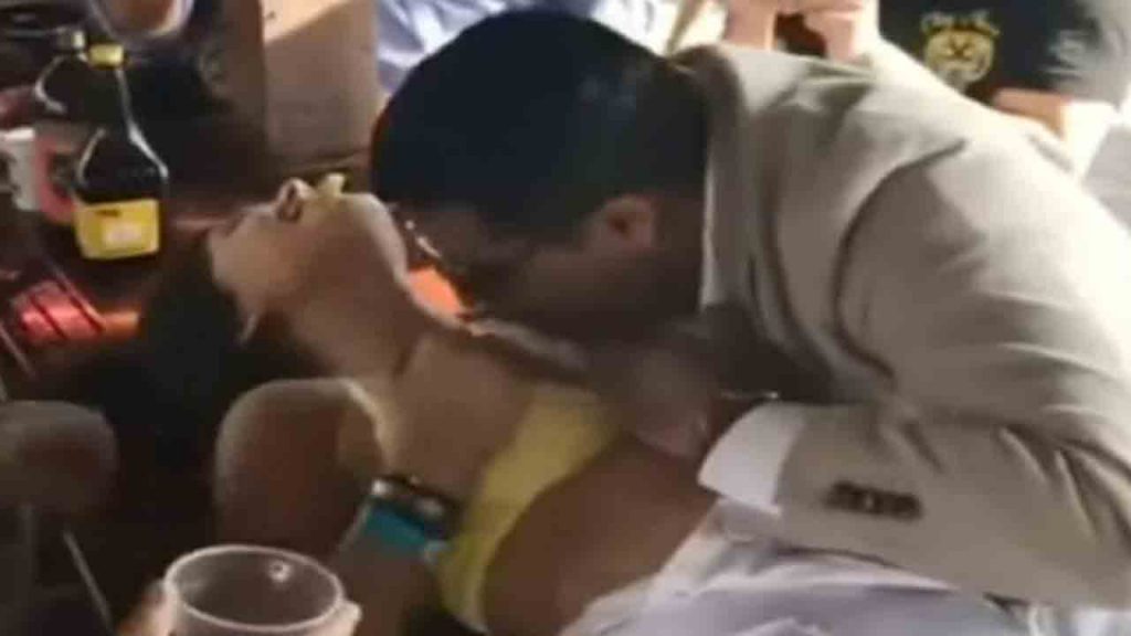 El servidor público recorre su vientre, pasa por sus senos y al final le da un beso a la chica quien lo empuja en un acto de desaprobación a su acto.