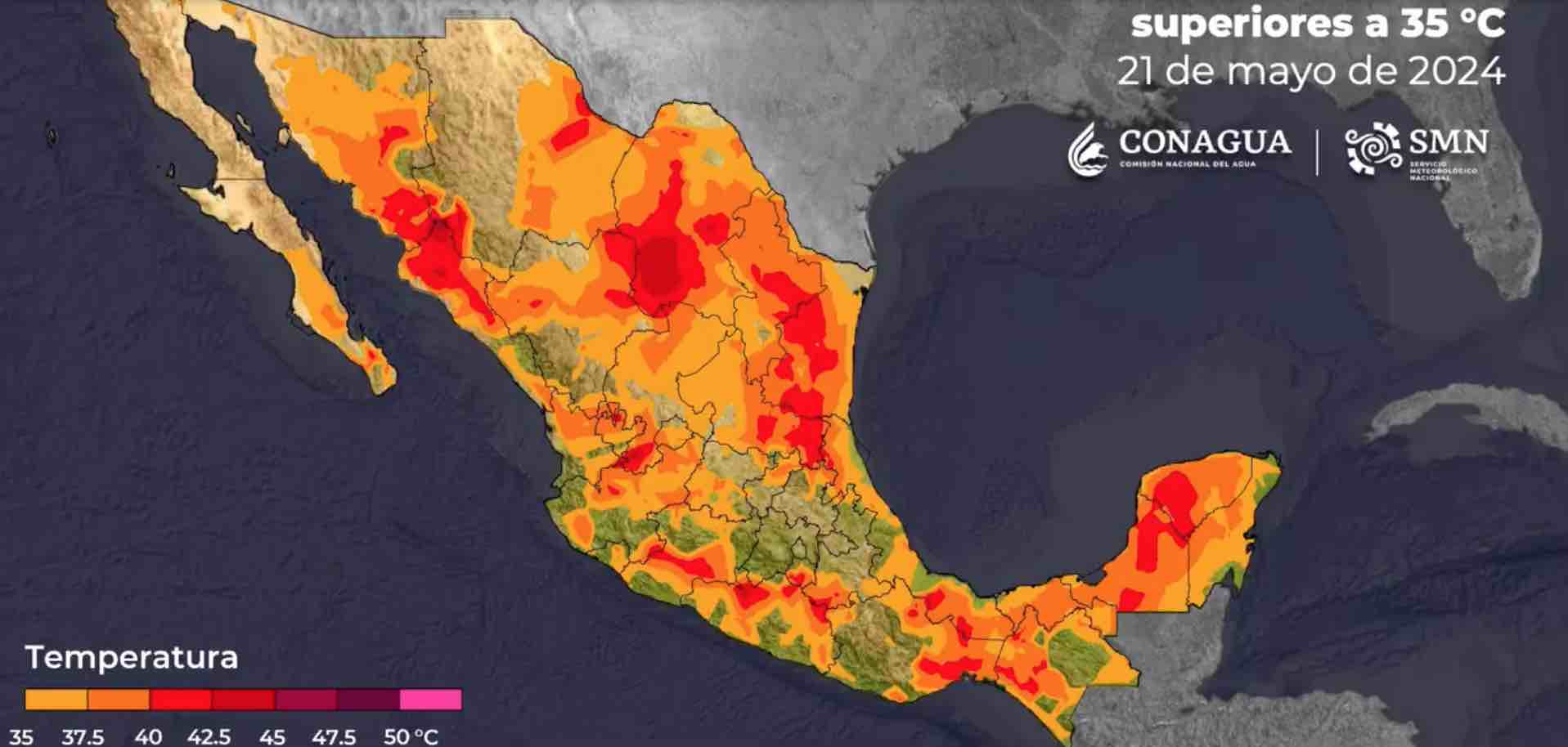 Este martes, la tercera onda de calor de la temporada predominará sobre el territorio nacional, con temperaturas superiores a los 45 °C en zonas de Sinaloa, Michoacán, Guerrero, Morelos, Coahuila, Nuevo León, Tamaulipas, San Luis Potosí, Veracruz, Tabasco, Campeche y Yucatán.