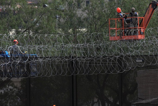 Agregaron tanquetas militares, pintar de negro el muro para elevar la temperatura de las barras de metal y hacer más difícil su escalada.
