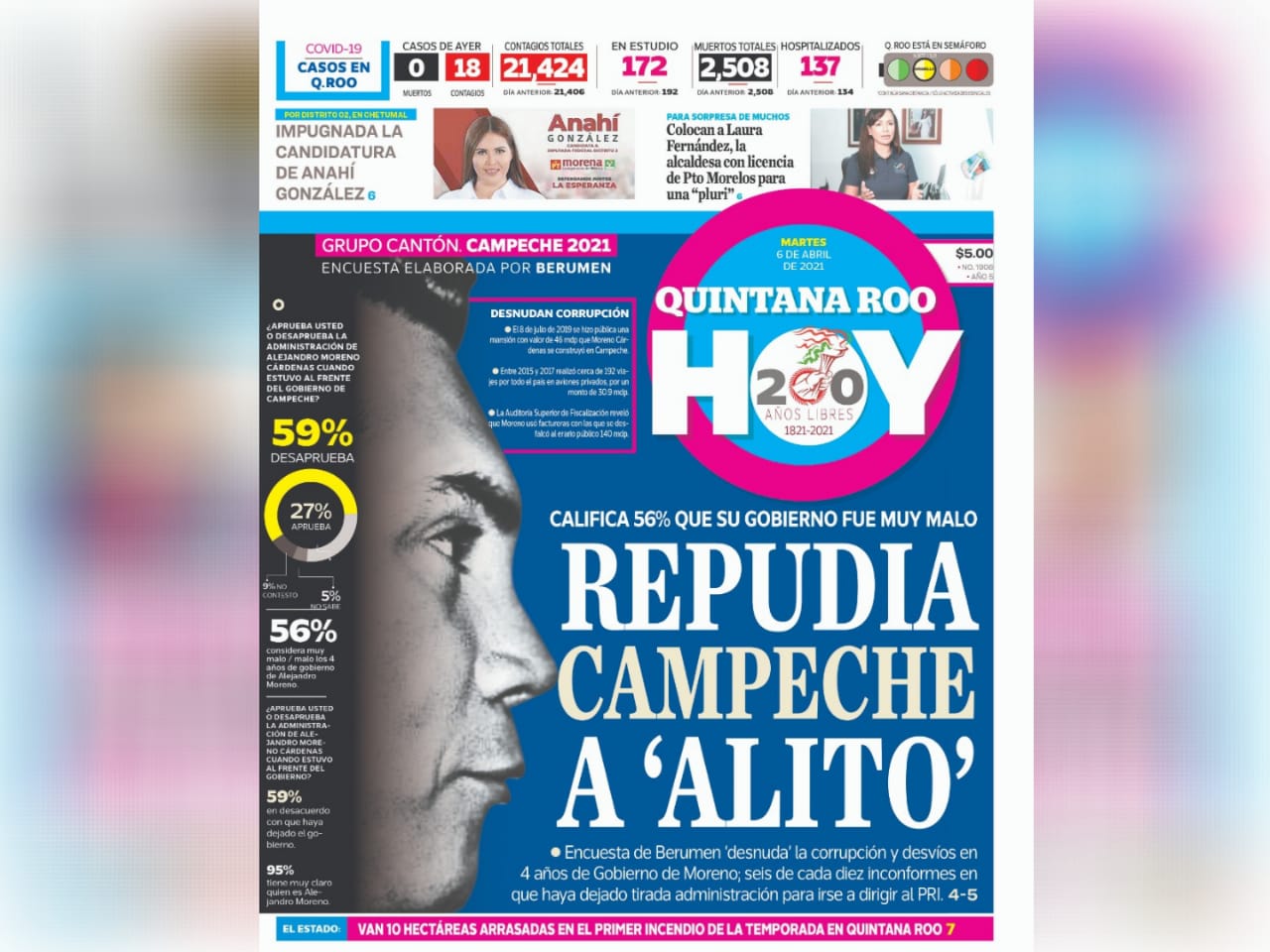 A casi dos años de que el priísta Alejandro Moreno Cárdenas ‘Alito’ dejó tirado el cargo de gobernador de Campeche para irse a dirigir los destinos del Partido Revolucionario Institucional (PRI), el 59 por ciento de los ciudadanos reprueban esta decisión, sobre todo por las acusaciones de presuntos actos corrupción y desvío de recursos públicos que se dieron durante su administración y que no han sido aclaradas.