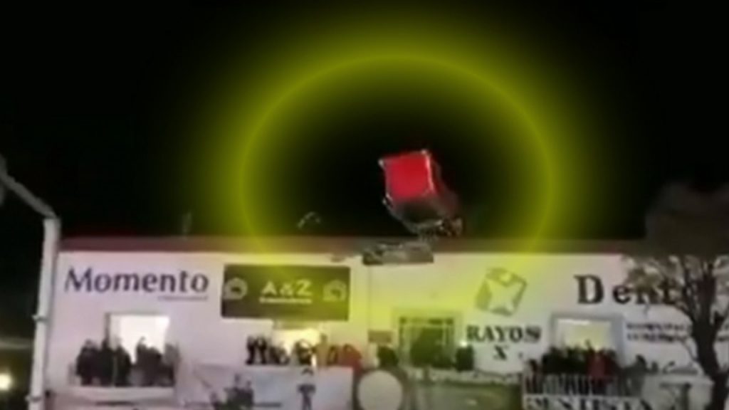Pero nuestro Santa no vio la cornisa de un edificio y debido al peso del trineo, los cables le jugaron una mala jugada: Chocó y vaya susto que se llevó al estar a 10 metros de altura.
