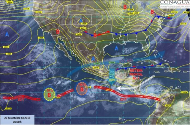 Una zona de baja presión con alto potencial ciclónico se ubicará a más de 900 km al suroeste de las costas de Colima, sin efectos para el territorio nacional.