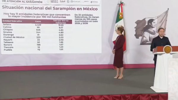 Ciudad de México.- Ante el brote de sarampión que se registra en el país, la Secretaría de Salud anunció una campaña intensiva de vacunación en 11 estados con la mayor incidencia de casos por cada 100 mil habitantes.