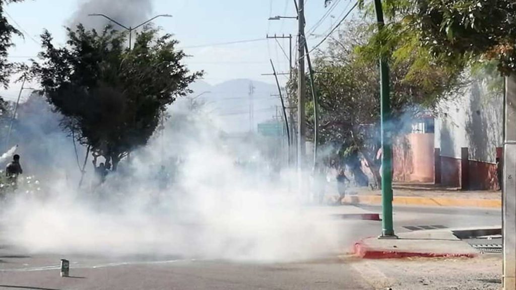 Un enfrentamiento entre policías antimotines y estudiantes de la escuela Normal Rural Matumatzá, luego de que los uniformados pretendían restablecer el tránsito sobre el libramiento norte a la altura de la colonia Plan de Ayala de Tuxtla Gutiérrez, donde los jóvenes bloqueaban el paso al tránsito vehicular.