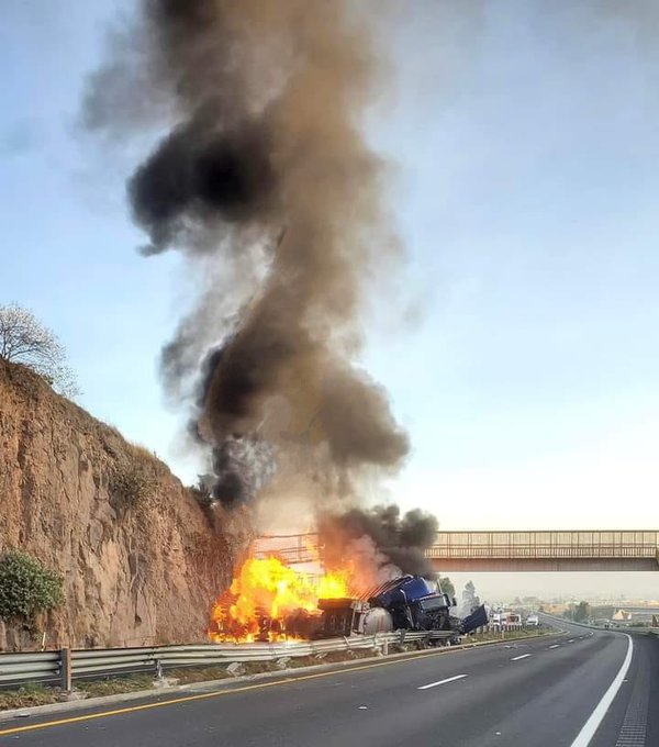 “En este momento personal de Bomberos Atlacomulco acudiendo para dar atención a incendio de tráiler el cual transporta alcohol farmacéutico, sobre el arco norte km 9 dirección Atlacomulco, San Pedro de los Metates, conductores se encuentran bien, pérdidas al 100 únicamente en tráiler y camión tipo torton, Si transitas por esta zona reduce tu velocidad y atiende las indicaciones de Guardia Nacional y personal de la caseta”, se lee redes del cuerpo de Bomberos.