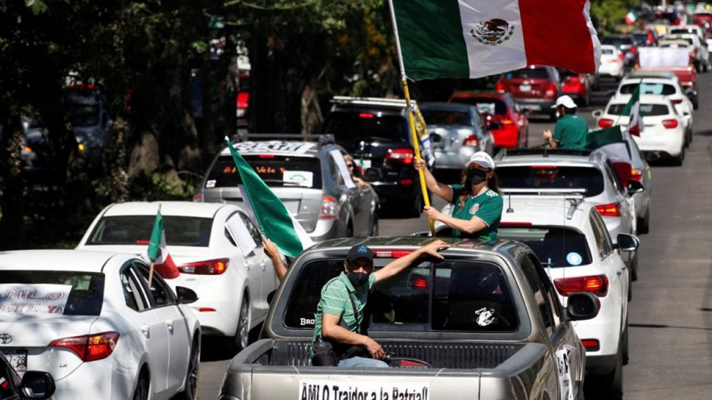 Los manifestantes llegaron en vehículos o motocicletas y portaron pancartas con los mensajes “¡Fuera López!”, “#AMLOveteYA“,”¡Fuchi! ¡Guácala! ¡Fuera AMLO!” y “No te conozco, pero nos necesitamos para cambiar a México”, mientras hacían sonar sus bocinas.