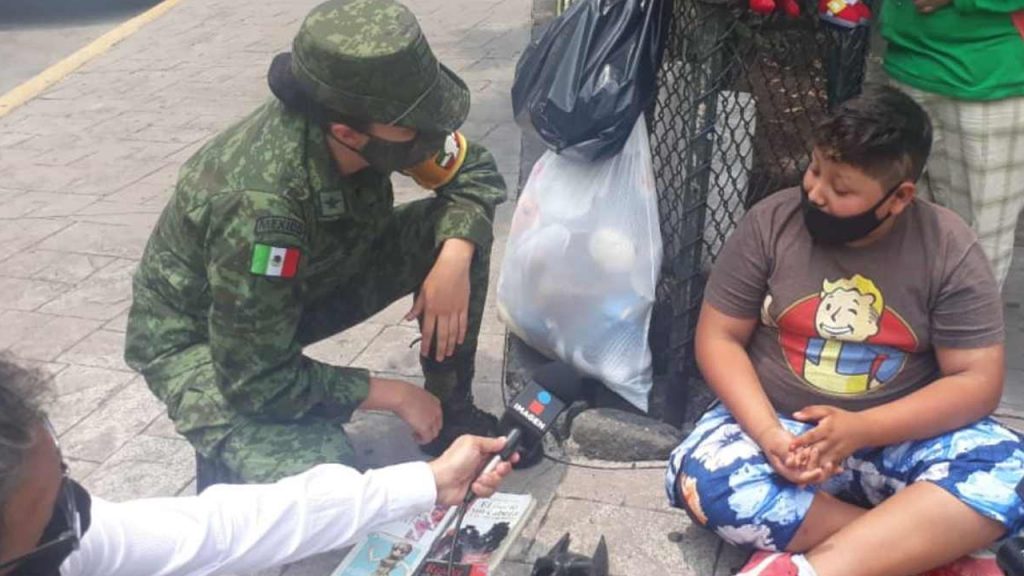 Luis Ángel se sentó a esperar la ayuda de más gente, cuando al camellón de Cuauhtémoc y Frontera llegó la youtuber soldado Alexa Bueno, quien se acercó a platicar con el estudiante de primaria.