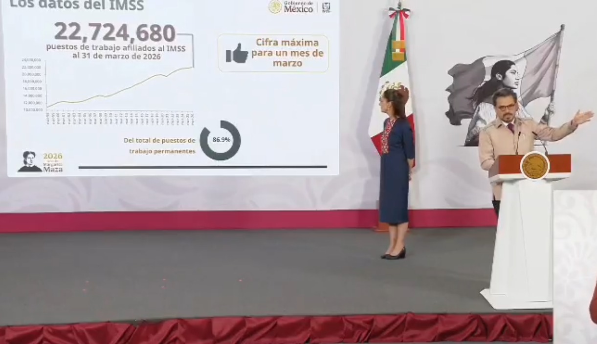 La presidenta Claudia Sheinbaum resumió los datos señalando que marzo de 2026 se consolida como el mes con el mayor número de empleos formales en la historia de México, reafirmando la estabilidad y el crecimiento de la economía nacional.