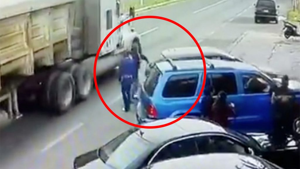 En las grabaciones, se observa a José “N” cuando se ‘echó’ de reversa en su coche Nissan Kicks gris y, a pesar que el ‘viene vien’ le indica que se detenga, lo ignora y por eso arrolló a un mariachi que pasaba detrás de su auto, justó cuando un tráiler transitaba junto a ellos, provocando que pasara sobre la víctima.