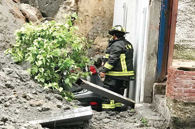El incidente ocurrió en un inmueble de departamentos marcado con el número 65 en la calle Bosque de Abetos, donde la tierra cayó de una altura de aproximadamente 15 metros de altura y cinco de longitud debido al reblandecimiento provocado por la lluvia, detalló Fausto Lugo, secretario de Protección Civil.