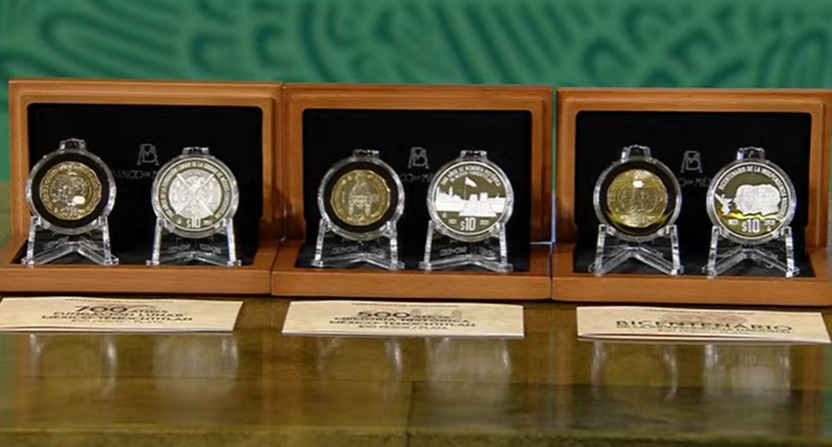 Tatiana Clouthier, secretaria de Economía (SE), presentó durante La Mañanera de este lunes 27, monedas conmemorativas que entran en circulación en México.