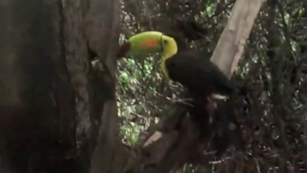 El ejemplar rescatado es un Tucán pico de canoa (Ramphastos sulfuratus), que se encuentra en la categoría de especie “Amenazada” dentro de la Norma Oficial Mexicana.