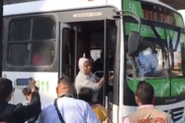 Luego de ser impedido el paso a la unidad número 50 en la Avenida Aztlán, en el cruce con Palacio de Justicia, algunas personas intentaron subir por la fuerza por la puerta trasera.