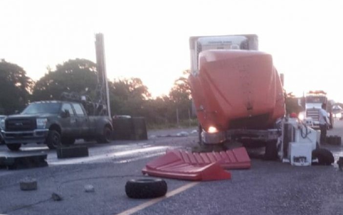 De acuerdo a datos recabados, el chófer de un trailer de la marca International y con placas 057EX9 del estado de Campeche, no alcanzó a frenar en el retén militar ubicado sobre la carretera federal, específicamente en Medellín, del municipio de Palenque.
