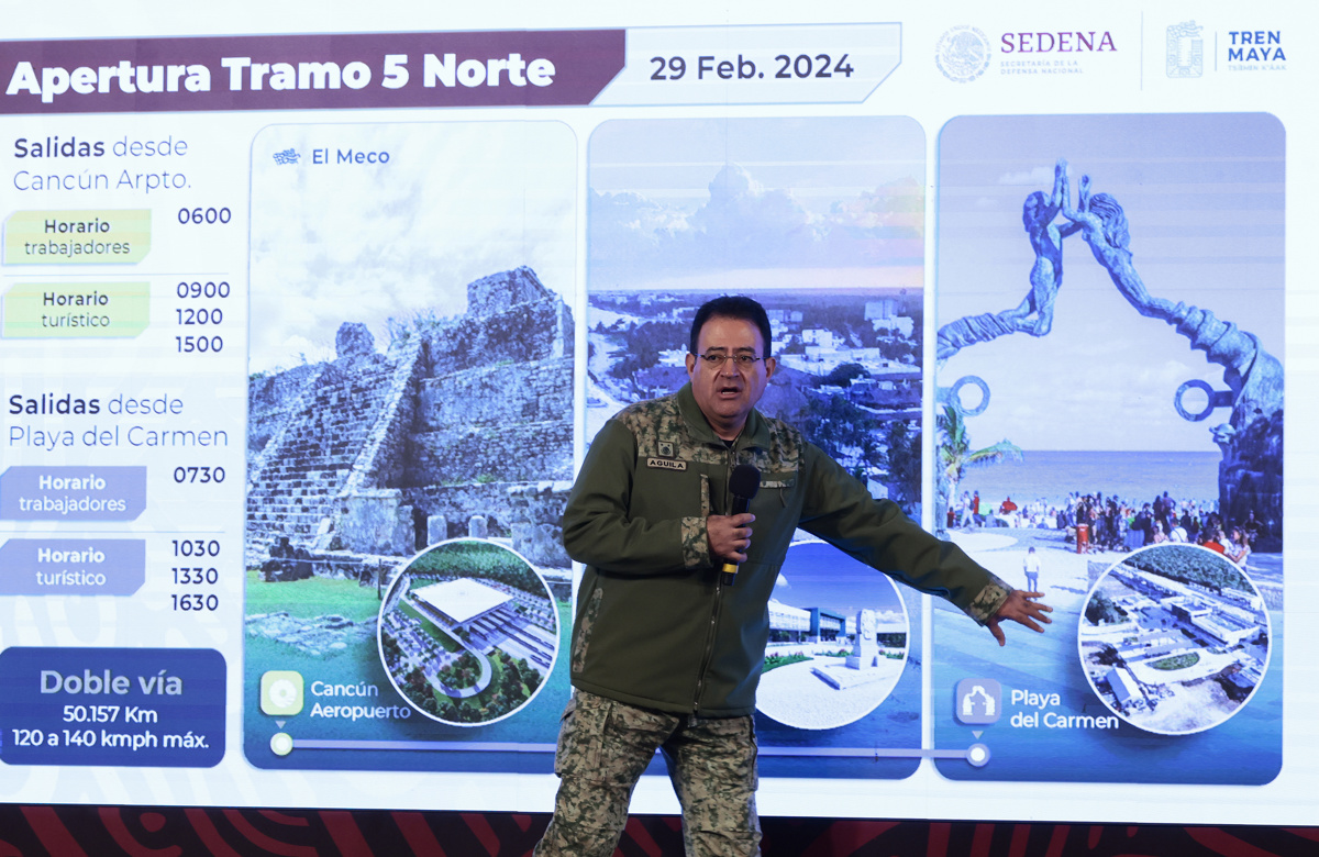 Así lo dio a conocer el general Óscar David Lozano Águila, director del Tren Maya, quien reiteró que el 29 de febrero quedará inaugurada la fase 3 del tramo 5 Norte, Cancún-Playa del Carmen.