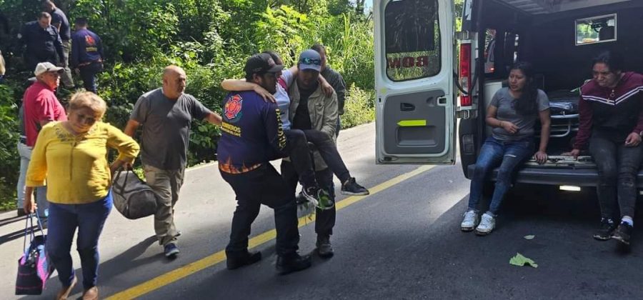 “Accidente automovilístico entre una camioneta y un autobús, al chocar el autobús se fue al precipicio, un barranco de aproximadamente 60 metros de profundidad, quedando personas lesionadas”